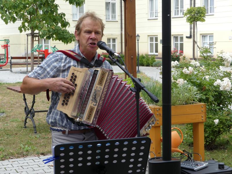 Posezení s panem Havránkem a jeho harmonikou.