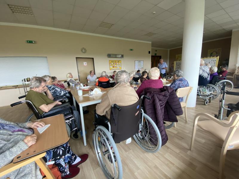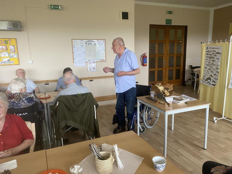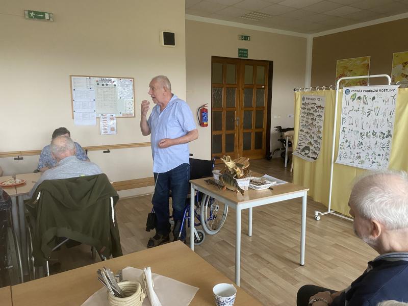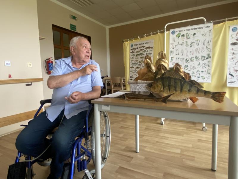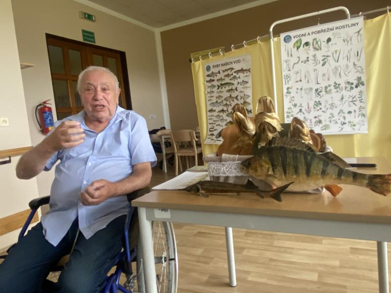 Dnes odpoledne se v našem Domově konala přírodopisná přednáška o rybách. Jeden z našich klientů je zkušeným odborníkem na ryby i rybaření a sám se proto rozhodl, že pro další klienty přichystá zajímavou a naučnou přednášku. Personál Domova přinesl na ukázku tematické rekvizity, kterými byla přednáška doplněna. Snažíme se naše klienty podporovat ve svých dřívějších zálibách a koníčcích a rádi jsme se proto zúčastnili dnešní přednášky.