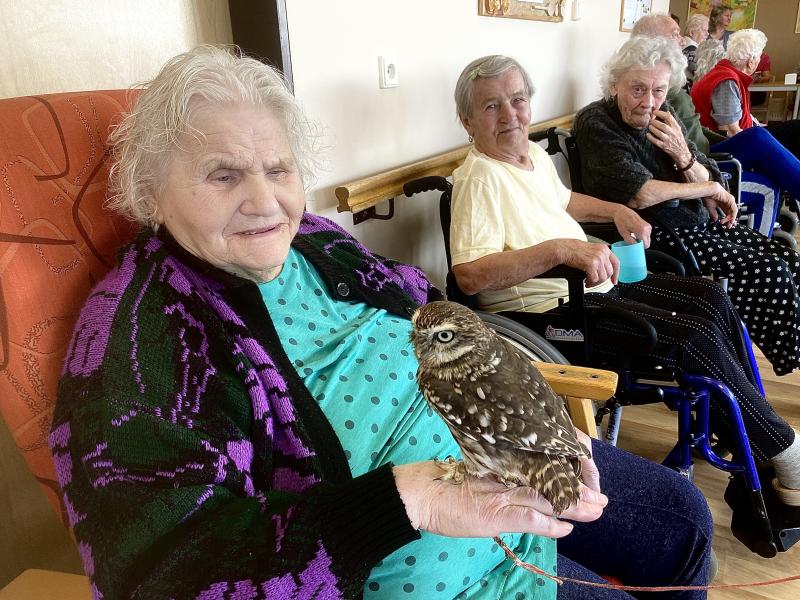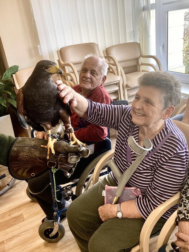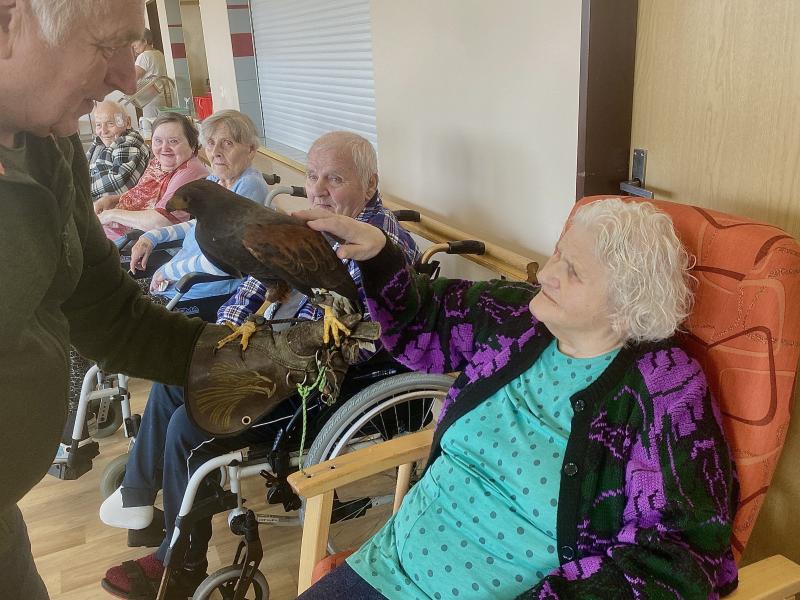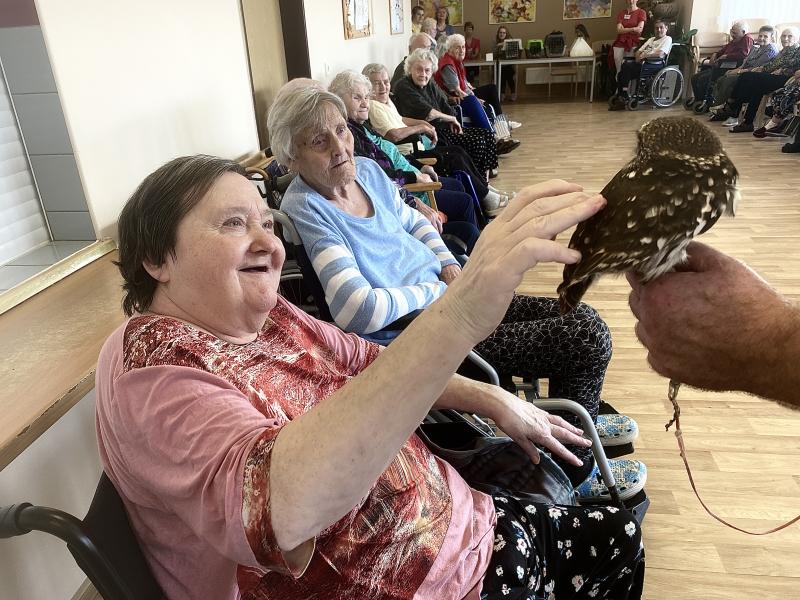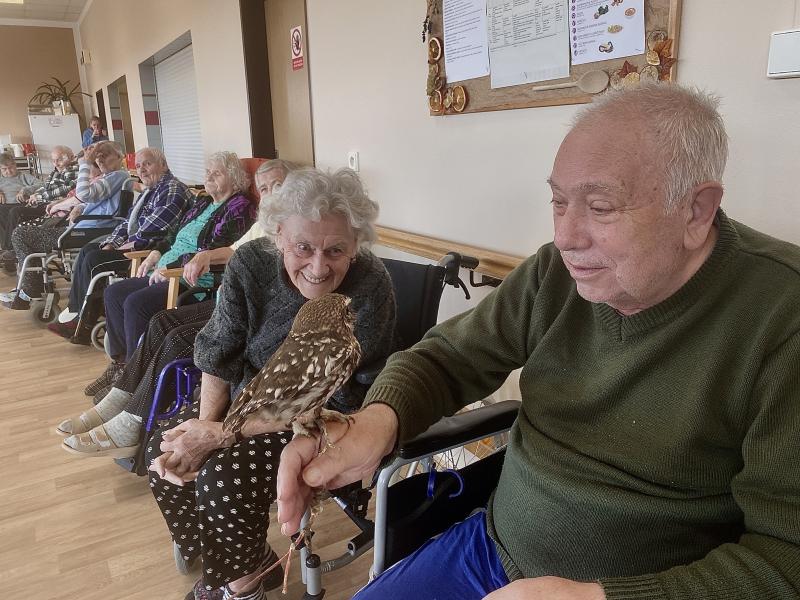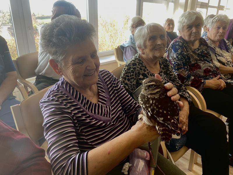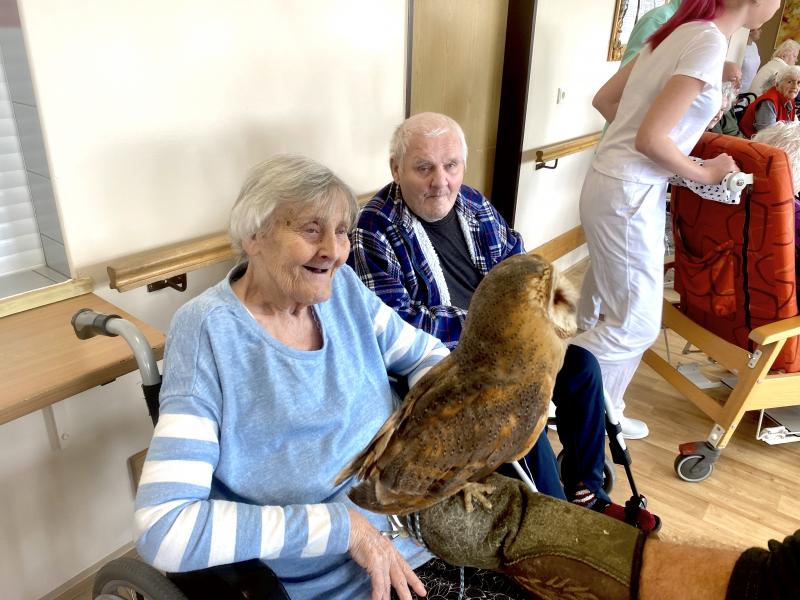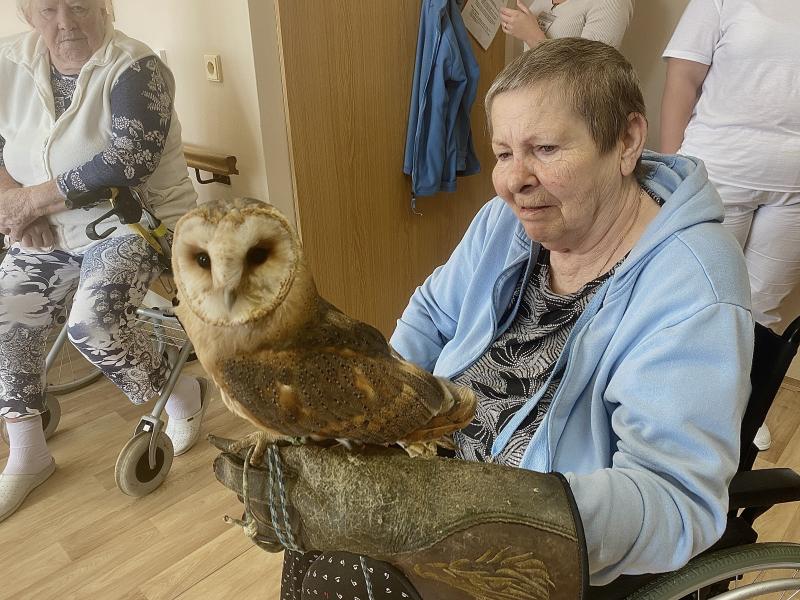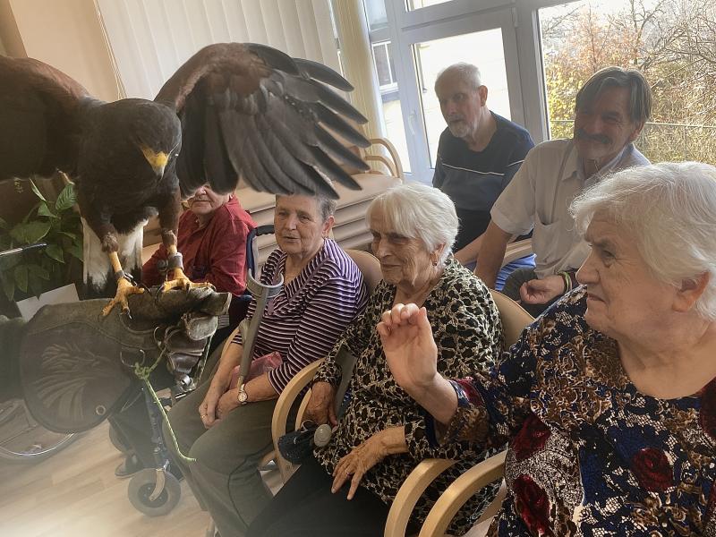 Dnes nás poctila vzácná návštěva, do našeho Domova zavítal pan Kunc společně se svými dravci. V průběhu hodinového představení jsme tak na vlastní oči mohli vidět sokola, káně Harrisovo, puštíka a sovu pálenou. Klienti měli možnost si všechny opeřence pohladit a ti odvážnější si dokonce vzali dravce i na ruku. Pan Kunc nám ke každému z nich přednesl i zajímavý výklad a zodpověděl všechny naše otázky.