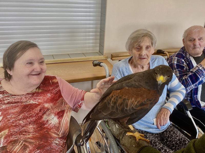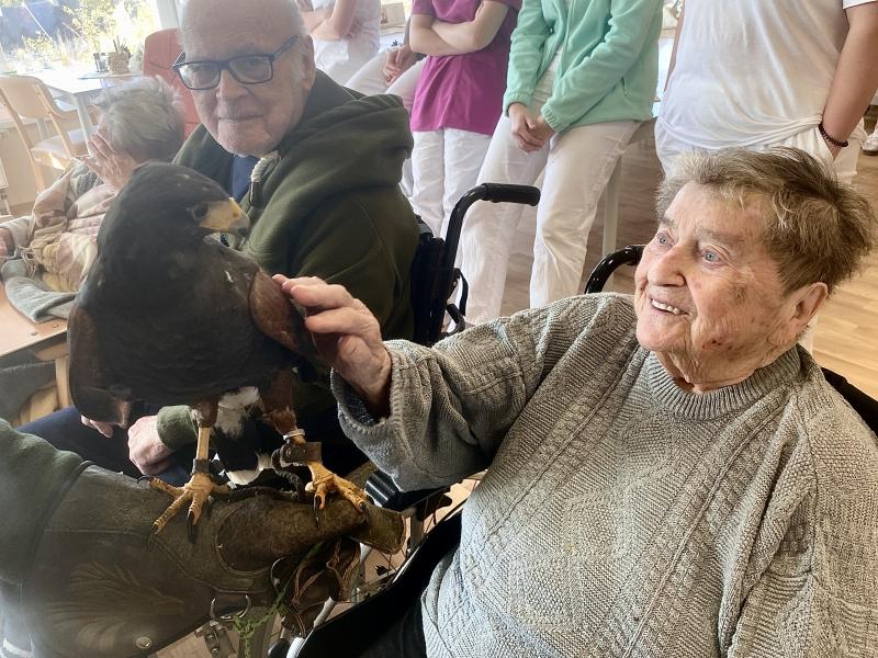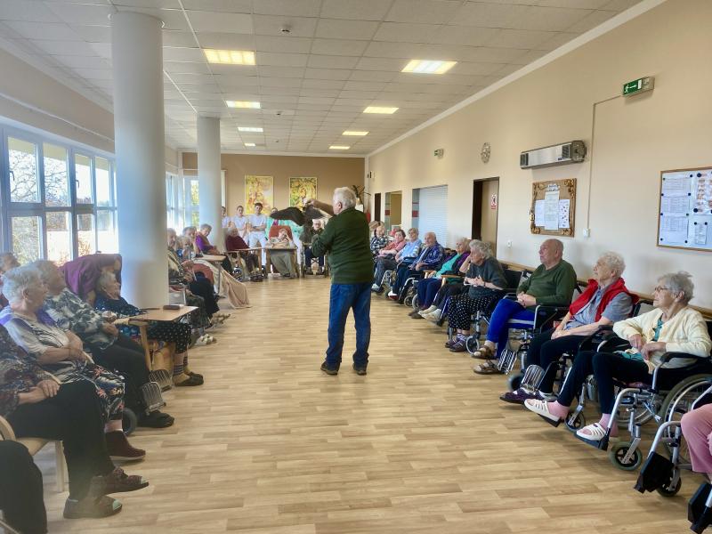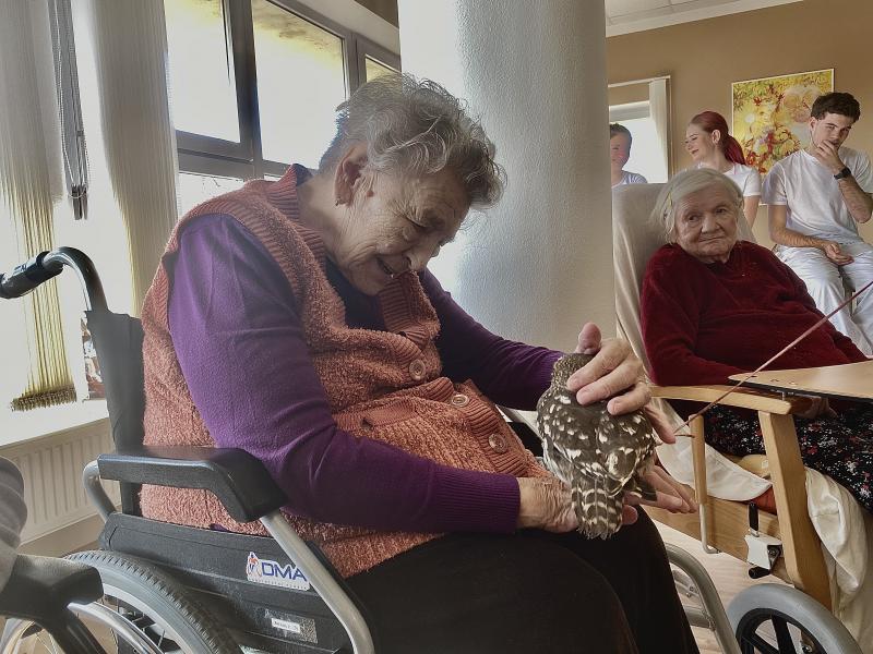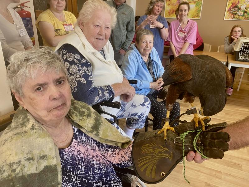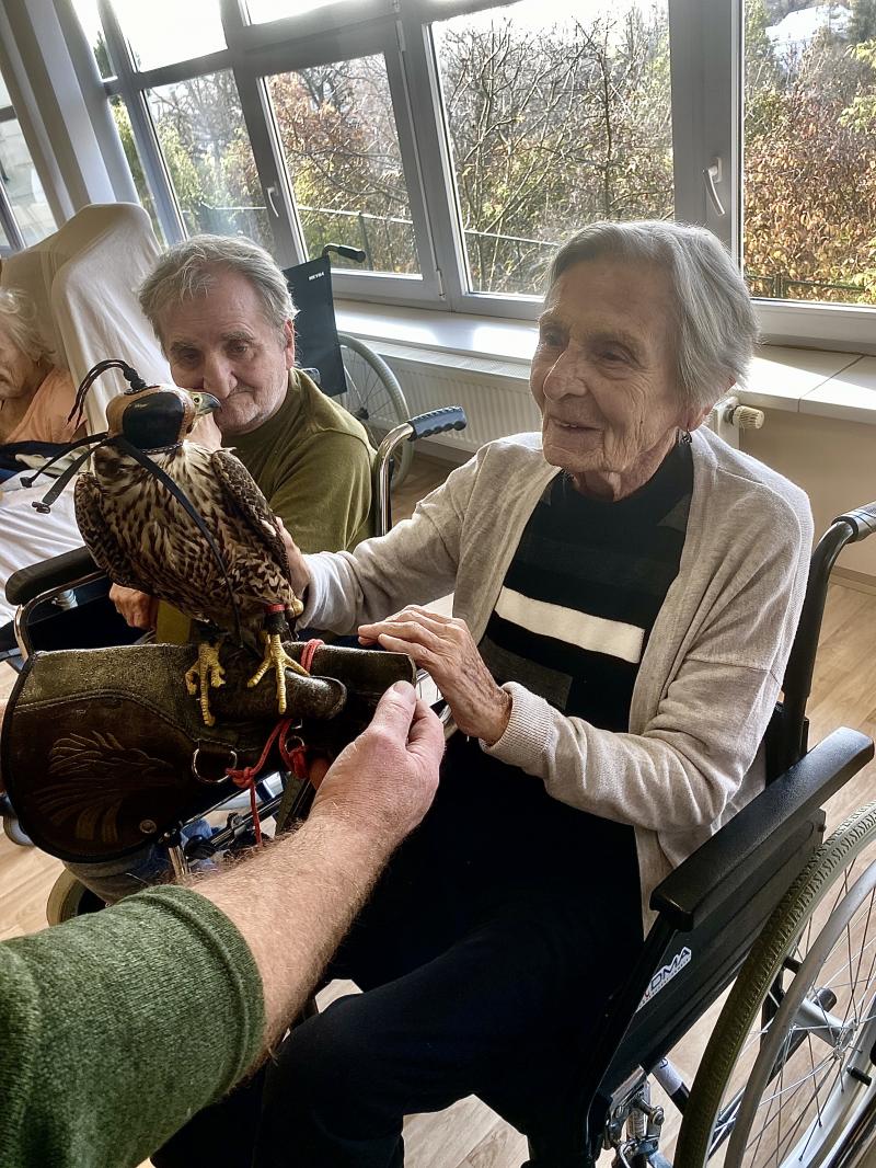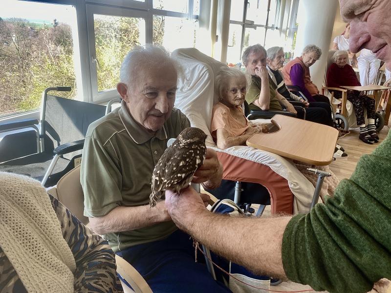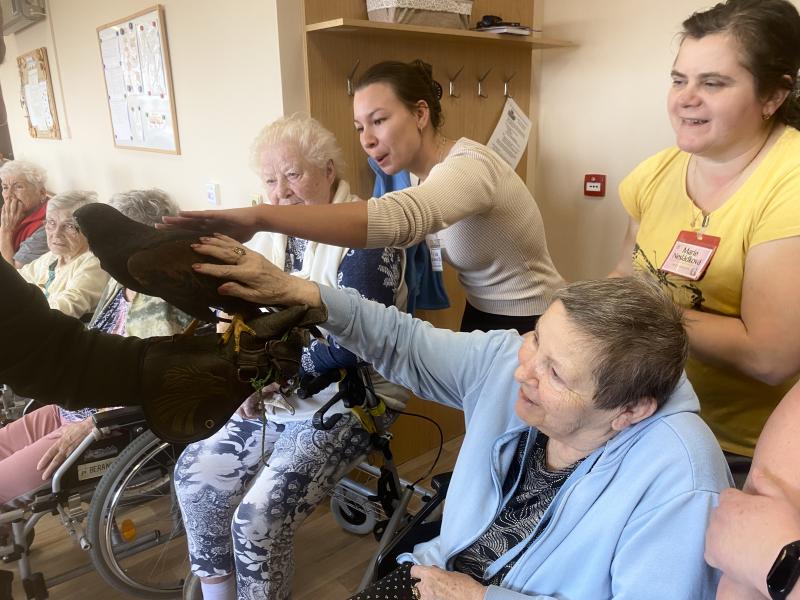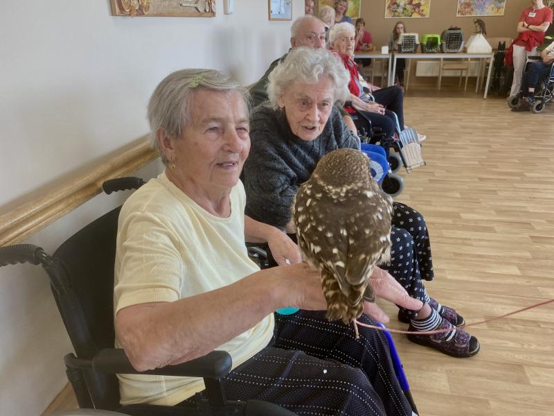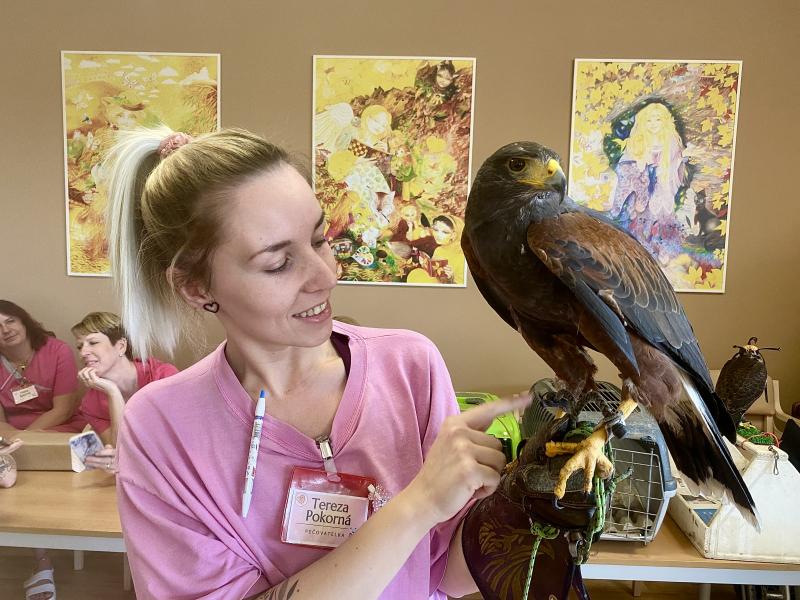 Dnes nás poctila vzácná návštěva, do našeho Domova zavítal pan Kunc společně se svými dravci. V průběhu hodinového představení jsme tak na vlastní oči mohli vidět sokola, káně Harrisovo, puštíka a sovu pálenou. Klienti měli možnost si všechny opeřence pohladit a ti odvážnější si dokonce vzali dravce i na ruku. Pan Kunc nám ke každému z nich přednesl i zajímavý výklad a zodpověděl všechny naše otázky.