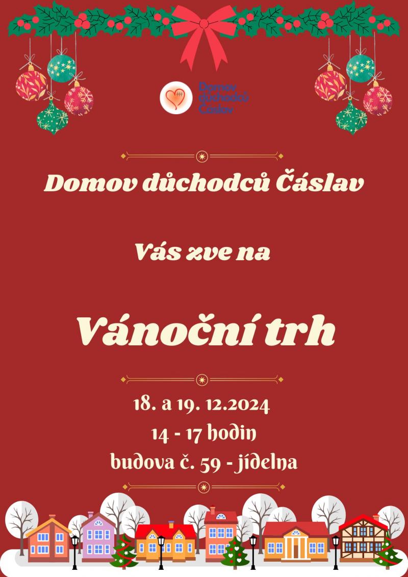 Domov důchodců Čáslav Vás srdečně zve na tradiční Vánoční trh ve dnech 18. a 19. 12. 2024 v čase 14 – 17 hodin. Krásné výrobky za symbolické ceny. Neváhejte, přijďte nasát vánoční atmosféru a podpořit náš Domov.