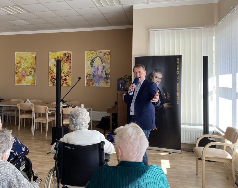 V Domově jsme tentokrát přivítali pana Hartmana, který za námi přijel se svým pěveckým vystoupením. Pan Hartman se specializuje na písně známých zpěváků, avšak my jsme si konkrétně vyžádali písně od božského Káji, Karla Gotta. Naši uživatelé měli možnost si zapívat, zavzpomínat a také se dozvědět nějaké zajímavosti ze života Karla Gotta. Uživatelé si vystoupení velice pochvalovali a odcházeli s opravdovým úsměvem na tváři. Děkujeme za skvělý zážitek a možnost zavzpomínat na českého slavíka.