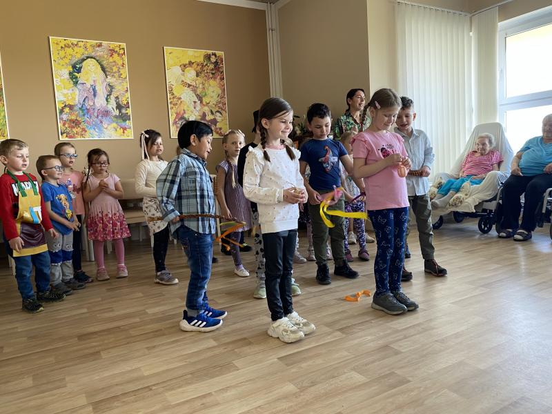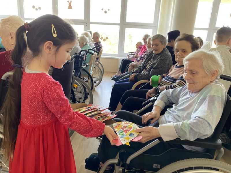 Velikonoční čas nám přišla zpestřit MŠ Rudolfa Těsnohlídka. Šikovné děti našim uživatelům zazpívaly písničky, recitovaly básničky a tančily. Nebojácní chlapci v závěru vyšlehaly pomlázkou naše uživatelky, aby byly omlazené a zdravé. Také všichni dostali dáreček od dětí v podobě přáníček a výrobků. Za tuto bezvadnou besídku dostaly děti i od nás odměnu. Děkujeme za krásnou podávanou a přejeme Veselé Velikonoce.