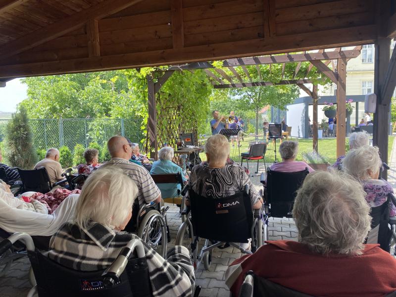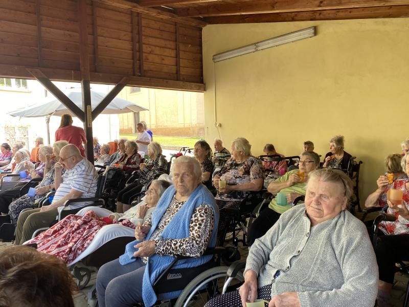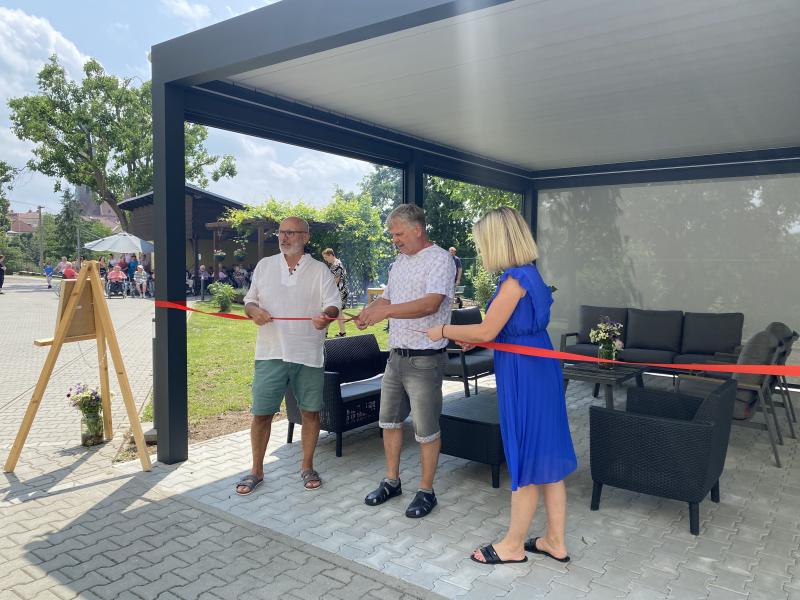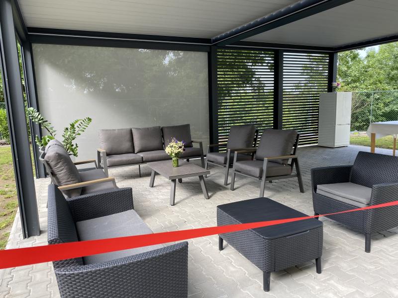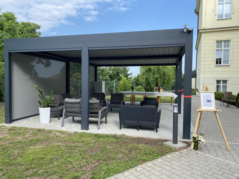 Dne 19.6. 2025 jsme slavnostně otevřeli naši nově postavenou bioklimatickou pergolu. Tato pergola bude sloužit jako posezení pro naše uživatele, i personál.