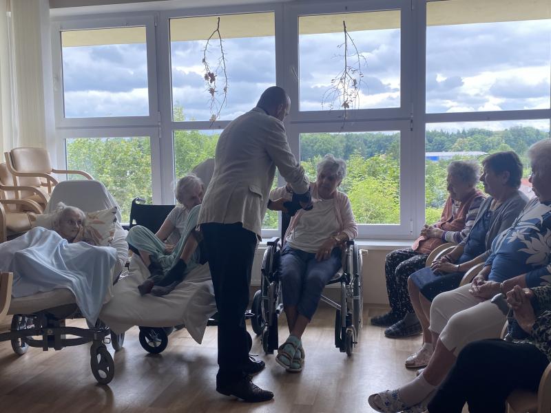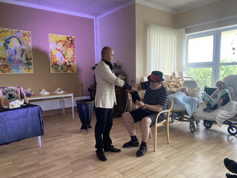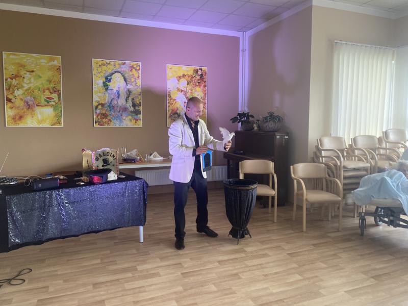 Poprvé v našem Domově měl možnost vystoupit pan Wald, kouzelník Waldini se svým magickým vystoupením. Nevěděli jsme, co nás čeká a všichni jsme byli mile okouzleni. Představení bylo kouzelné, napínavé, vtipné, a dokonce jsme se naučili, jak se některé triky provádějí. Uživatelé měli radost, když Pan kouzelník vyčaroval opravdovou holubičku, kterou si poté mohli všichni pohladit a vyfotit se s ní. Kompletní zážitek byl završen motáním zvířátek z balonků, kterými byli obdarování všichni zúčastnění. Byl to nezapomenutelný zážitek, o kterém si uživatelé budou dlouho vyprávět u kafíčka.