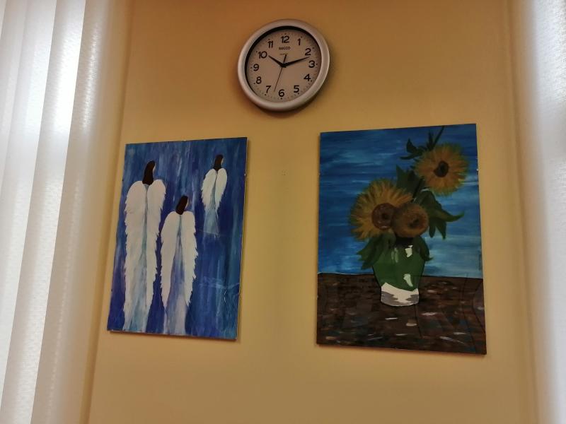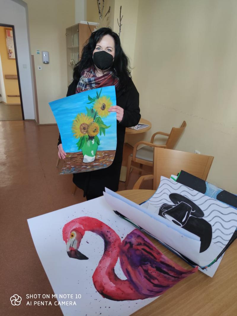 Paní učitelka výtvarné výchovy z čáslavské ZUŠ Renata Janoušková přišla s novým nápadem, jak zaměstnat svoje žáky a zároveň tím i přinést radost do našeho zařízení. Žáci malovali obrazy, paní učitelka je vystavila na facebooku a občané Čáslavi mohli posílat jednotlivým obrazům svoje hlasy. Nejúspěšnější obrazy byly darovány mimo jiné i našemu Domovu. Obdrželi jsme celkem 11 obrazů, které budou vystaveny v jídelně na budově čp.94, dále na chodbě před kaplí a před rehabilitací budovy čp.59. Přičemž 3 obrazy ozdobí také pokoje klientů.
