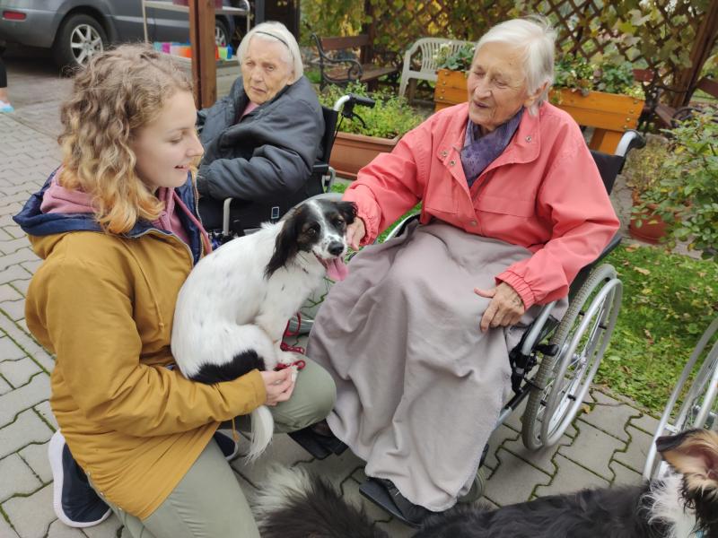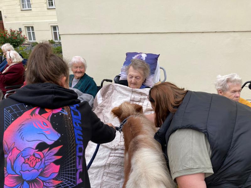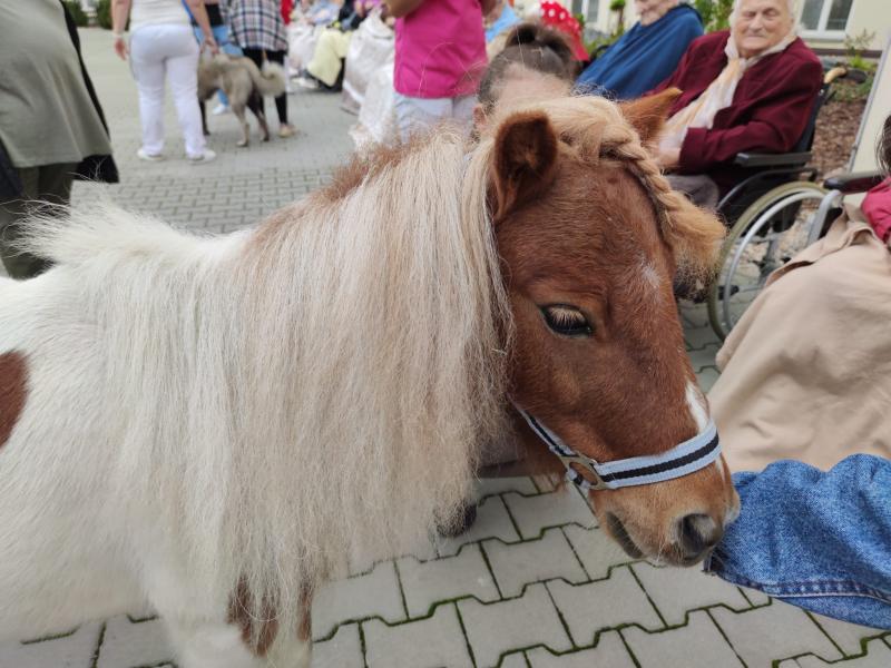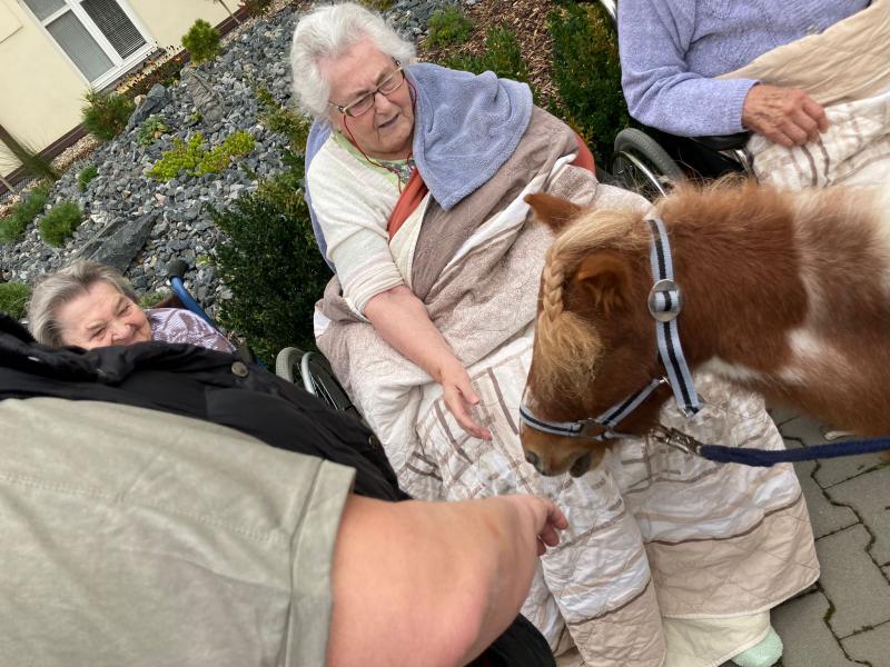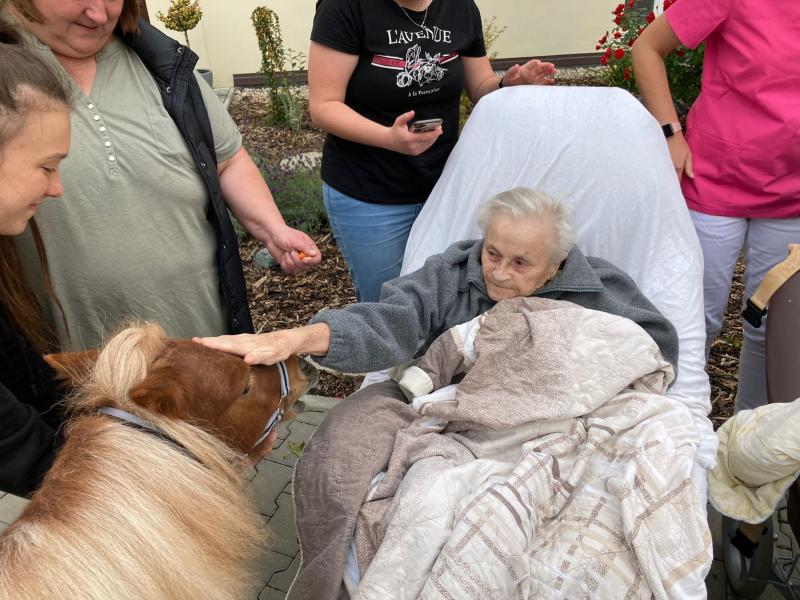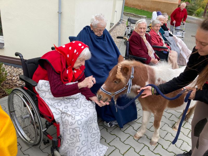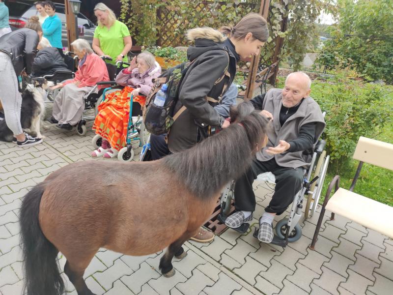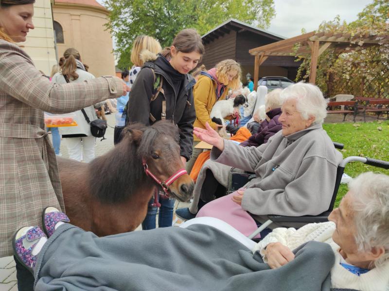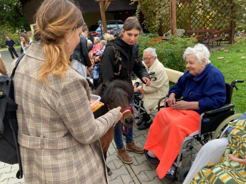 Ve čtvrtek 6.10. 2022 naše klienty do Domova přišli navštívit miniponíci a pejsci ze Střední zemědělské školy v Čáslavi.