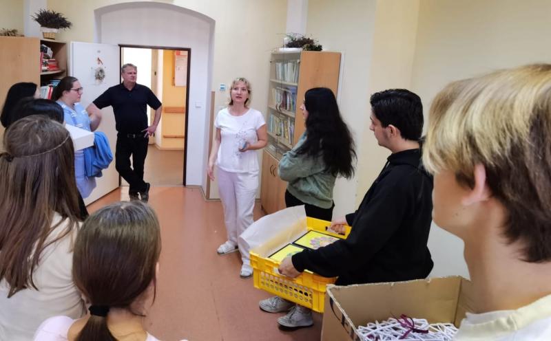 V rámci Týdne laskavosti nás v úterý 8. 11. navštívila paní vychovatelka Drahotová se svými studenty ze Středního odborného učiliště společného stravování Poděbrady. Tuto milou návštěvu jsme u nás přivítali již potřetí. Paní vychovatelka Drahotová je vždy plná radosti, laskavosti a dovede nadchnout i svoje studenty. Letos přivezli našim klientům výrobky, které osobně vyrobili – zákusek, levandulové sáčky, srdíčka a mandaly na zavěšení na zeď. A hlavně jim dárky osobně předali a s klienty si popovídali, což naši klienti ocení vždy nejvíce. Paní vychovatelce Drahotové i studentům moc děkujeme a těšíme se na další návštěvu.