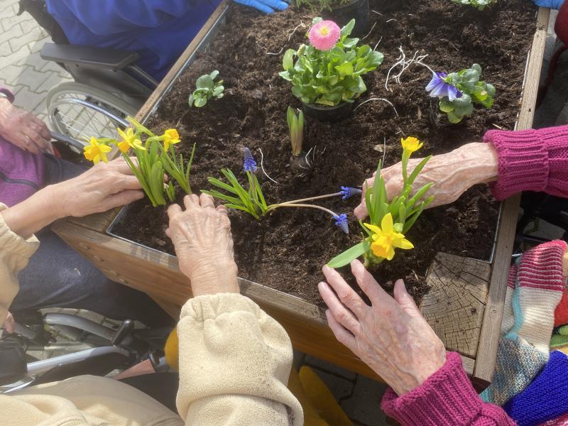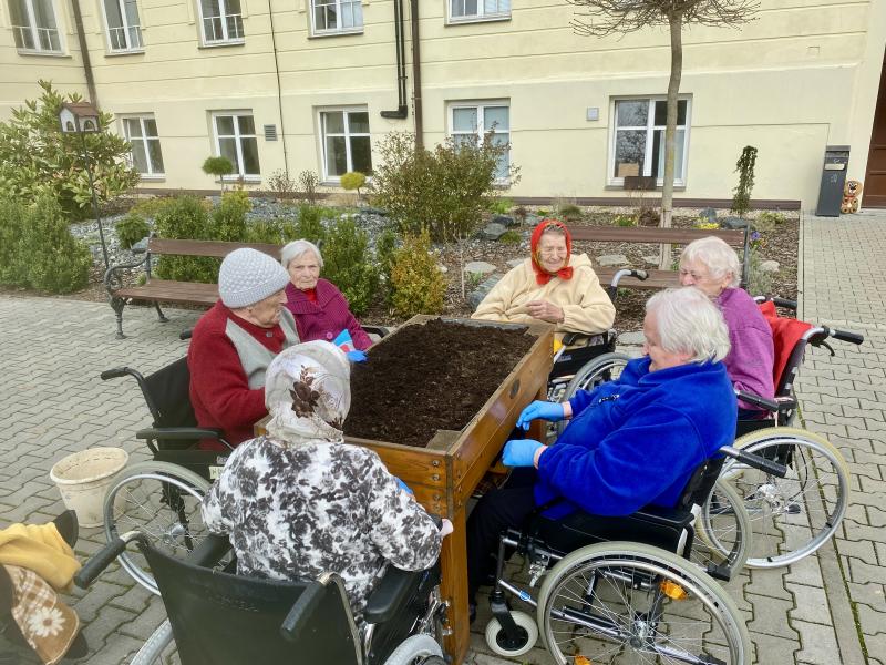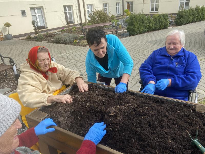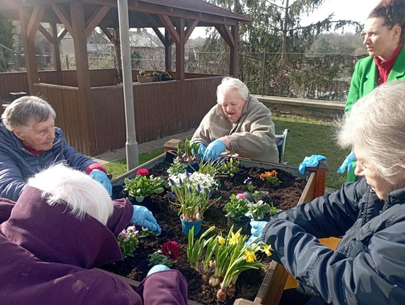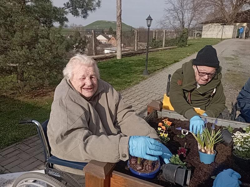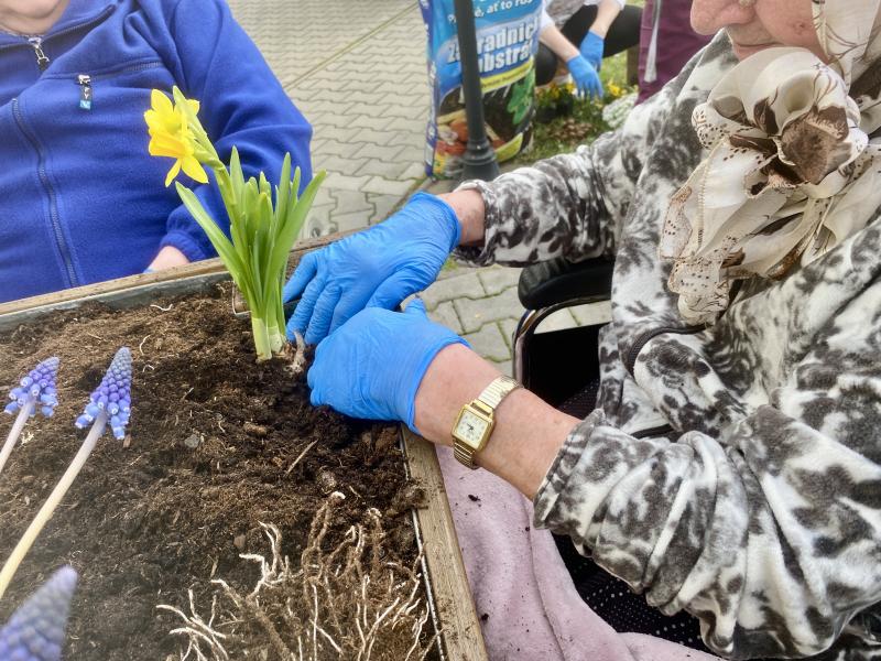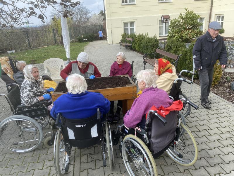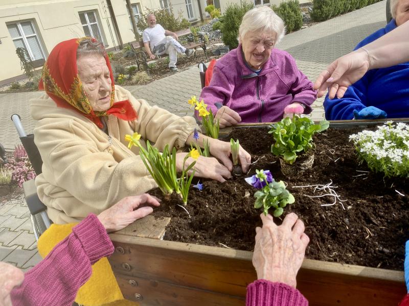 Do Domova důchodců Čáslav pomalu přichází jaro. V pátek, 15. 3. 2024, se uživatelky pustily do osazování mobilních záhonů. Při zahradničení se dostanou na čerstvý vzduch, vzájemně spolupracují a mohou i relaxovat. Areál našeho Domova nyní již zdobí čerstvě zasazené květiny.