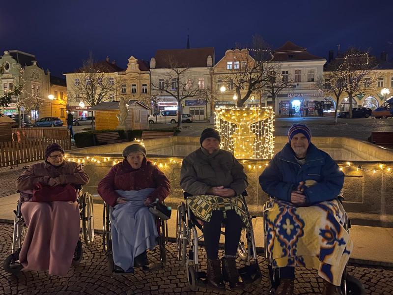 Kde jinde nasát vánoční atmosféru nežli u vánočního stromečku. Pracovnice volnočasových aktivit a přímé péče vyjely s klienty našeho Domova na náměstí města Čáslav. Krásně nazdobený stromeček se nachází zhruba 10 minut cesty od budovy, a proto jsme využili příležitosti. Klienti si dopřáli svařeného vína a punče a v dobré náladě shlédli osvětlené náměstí. Klienti také zavzpomínali, jak slavili Vánoce v mládí. Vycházka se nám vydařila.