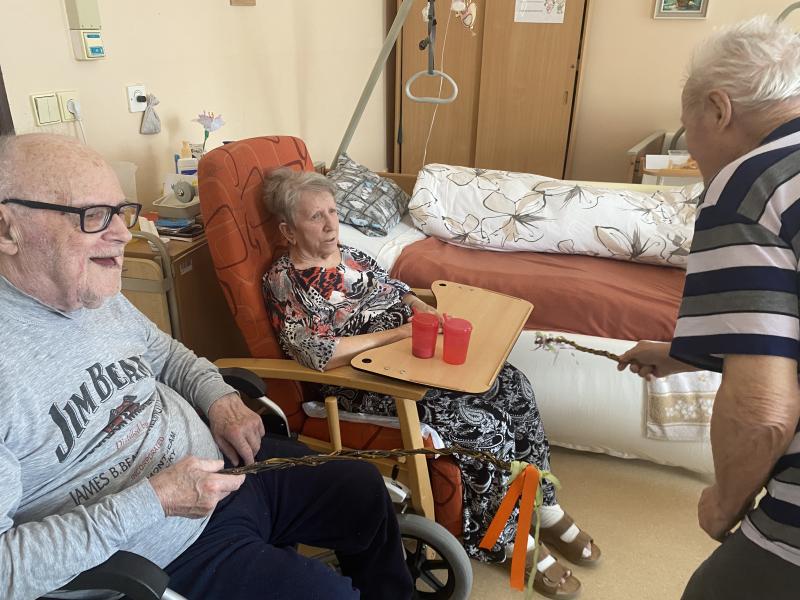 Naši pánové si pomlázku upletli a na Velikonoční pondělí použili. Vyrazili omladit nejen naše uživatelky, ale i personál. Bylo to veselí, které si pánové opravdu užívali. A dámy samozřejmě také.