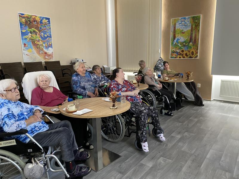 Posezení vrstevníků v rámci aktivity zvané Kavárnička. Toto společné posezení u filmu a pohoštění organizujeme jednou do měsíce. Smyslem této aktivity je zapojit uživatele, kteří se během celého měsíce nezapojili do žádné jiné aktivity, anebo se zapojili pouze zřídka. I změna prostředí či vyjití z každodenního stereotypu je důležitá.