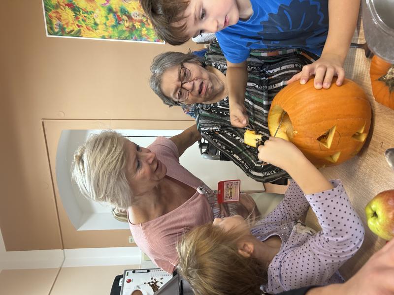 Dýňové období začalo. V minulém týdnu jsme v našem Domově přivítaly děti z MŠ Masarykova Čáslav. Spolupráce s touto školkou pokračuje již od loňska. Děti s našimi uživateli společnými silami dlabaly a dekorovaly dýně. Tato krásná mezigenerační setkávačka se vydařila a už teď se těšíme na další společnou aktivitu.