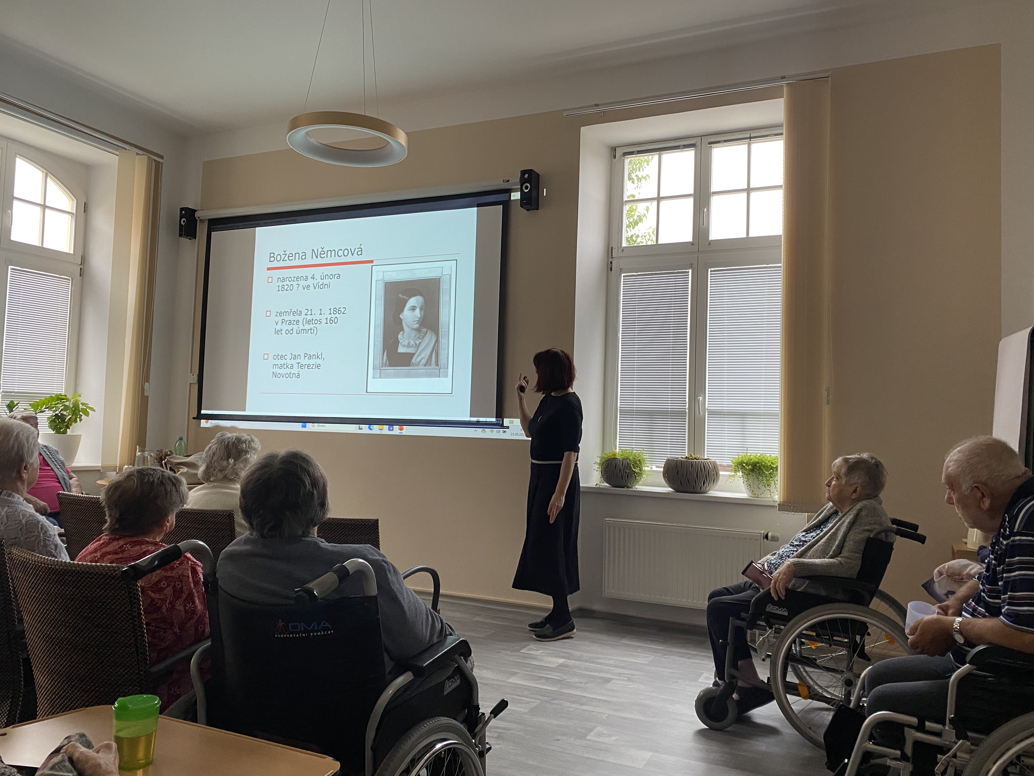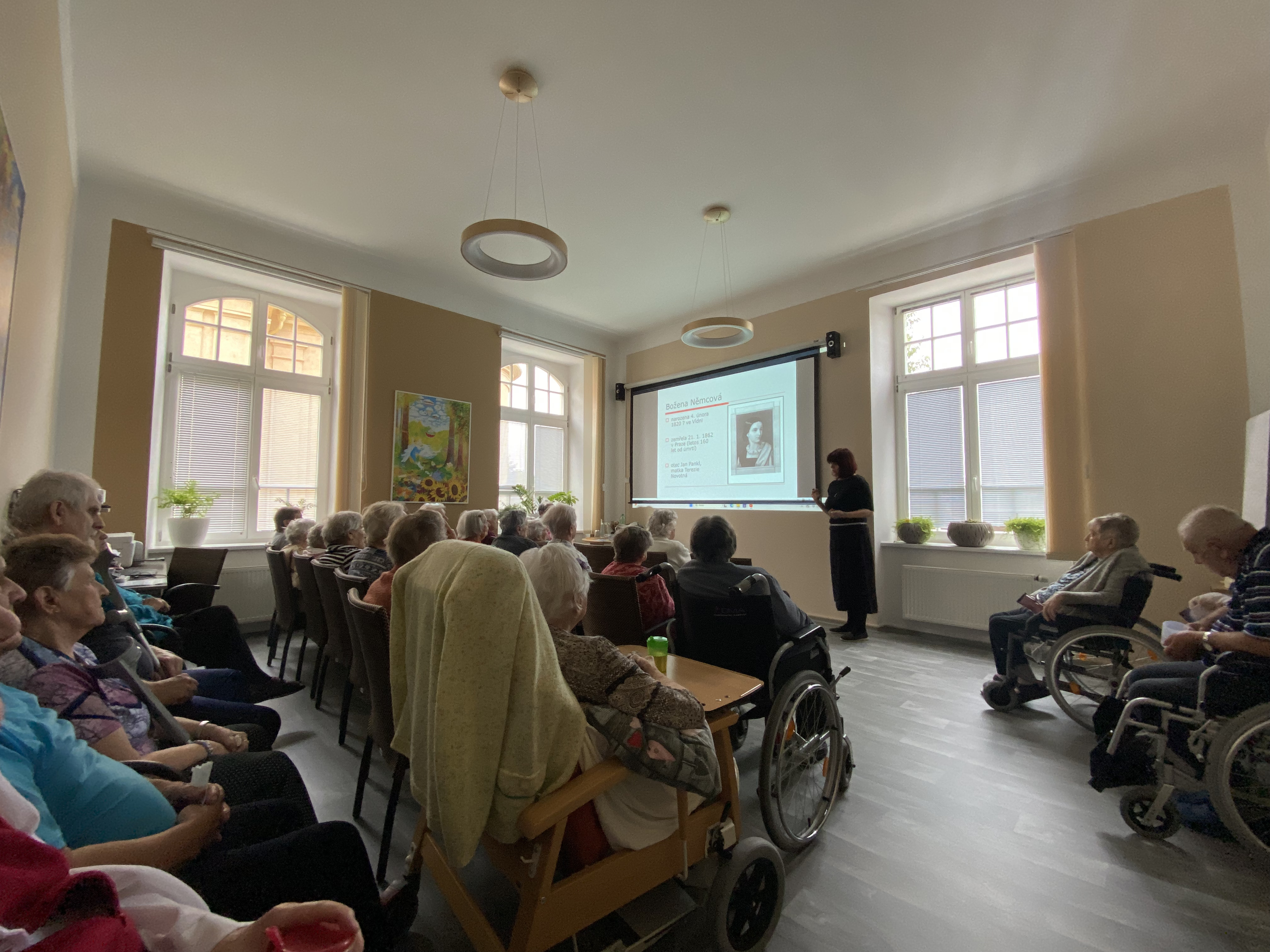 Zcela poprvé se v Našem Domově uskutečnila přednáška. Spisovatelka a lektorka paní Bittnerová nás oslovila, že by našim uživatelům přednesla život a lásky Boženy Němcové. Přednáška byla velmi poutavá, uživatelé zavzpomínali na známou osobnost a přenesli se tak do doby, kdy se o Boženě Němcové učili a četli její dílo Babička. Nová forma kulturního programu uživatele zaujala. Děkujeme za příjemné dopoledne.