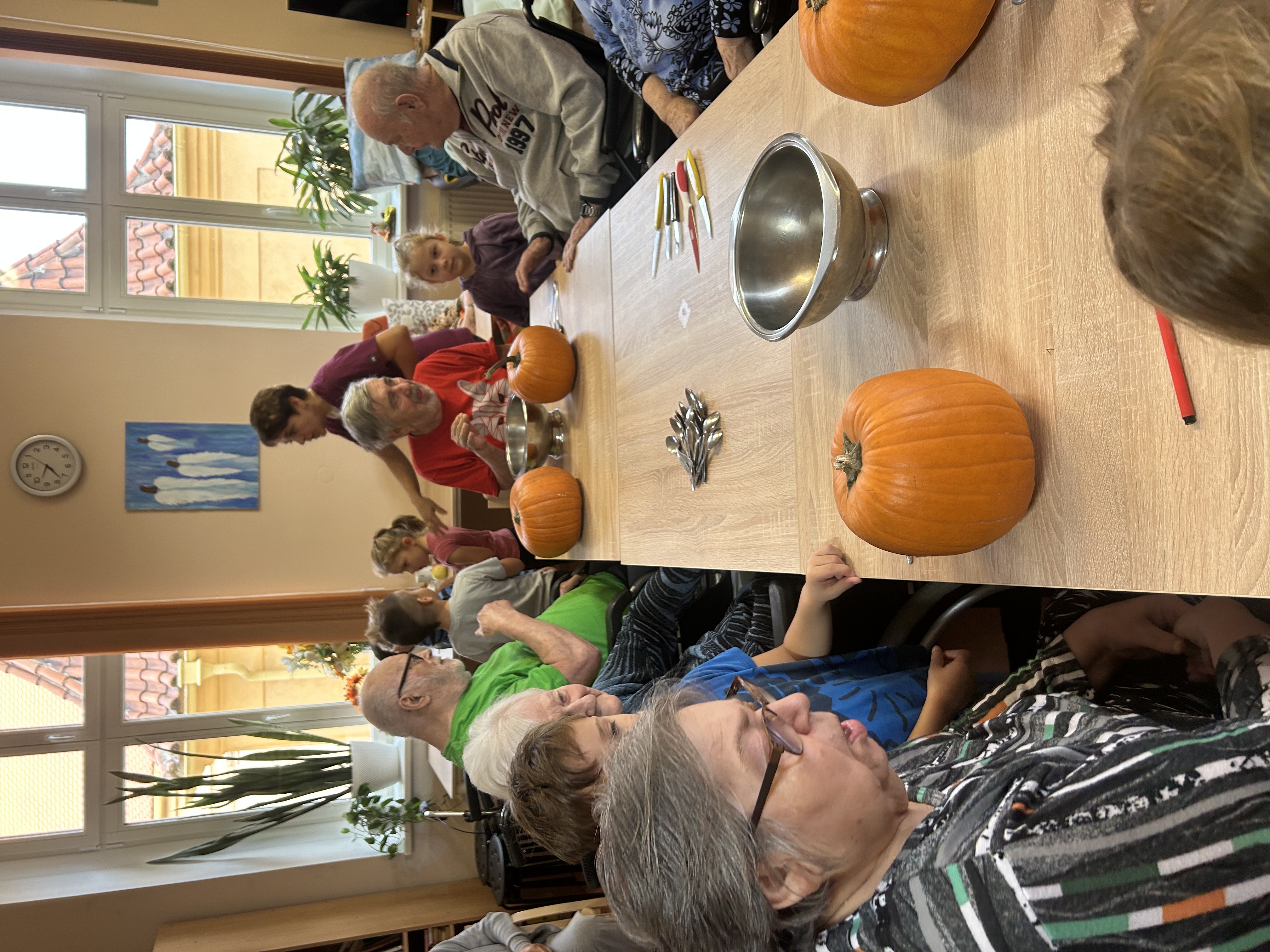 Dýňové období začalo. V minulém týdnu jsme v našem Domově přivítaly děti z MŠ Masarykova Čáslav. Spolupráce s touto školkou pokračuje již od loňska. Děti s našimi uživateli společnými silami dlabaly a dekorovaly dýně. Tato krásná mezigenerační setkávačka se vydařila a už teď se těšíme na další společnou aktivitu.
