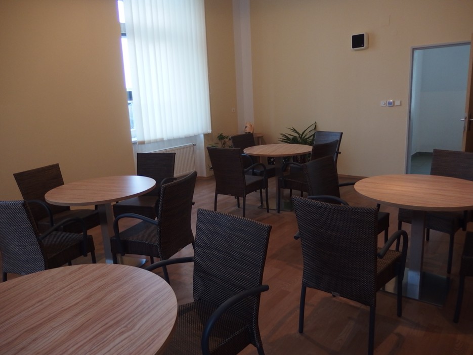 Mimo pokoj jsou v prostorách DD k dispozici společné prostory – společenské místnosti, místnosti pro volnočasové aktivity, terasa či zahrada s altánkem. Domov také disponuje vlastním stravovacím provozem, který je v omezeném režimu otevřen také pro zaměstnance a externí strávníky. Uživatelé se mohou stravovat v jídelně budovy, kde jsou ubytováni nebo na pokojích (dle možností uživatele).